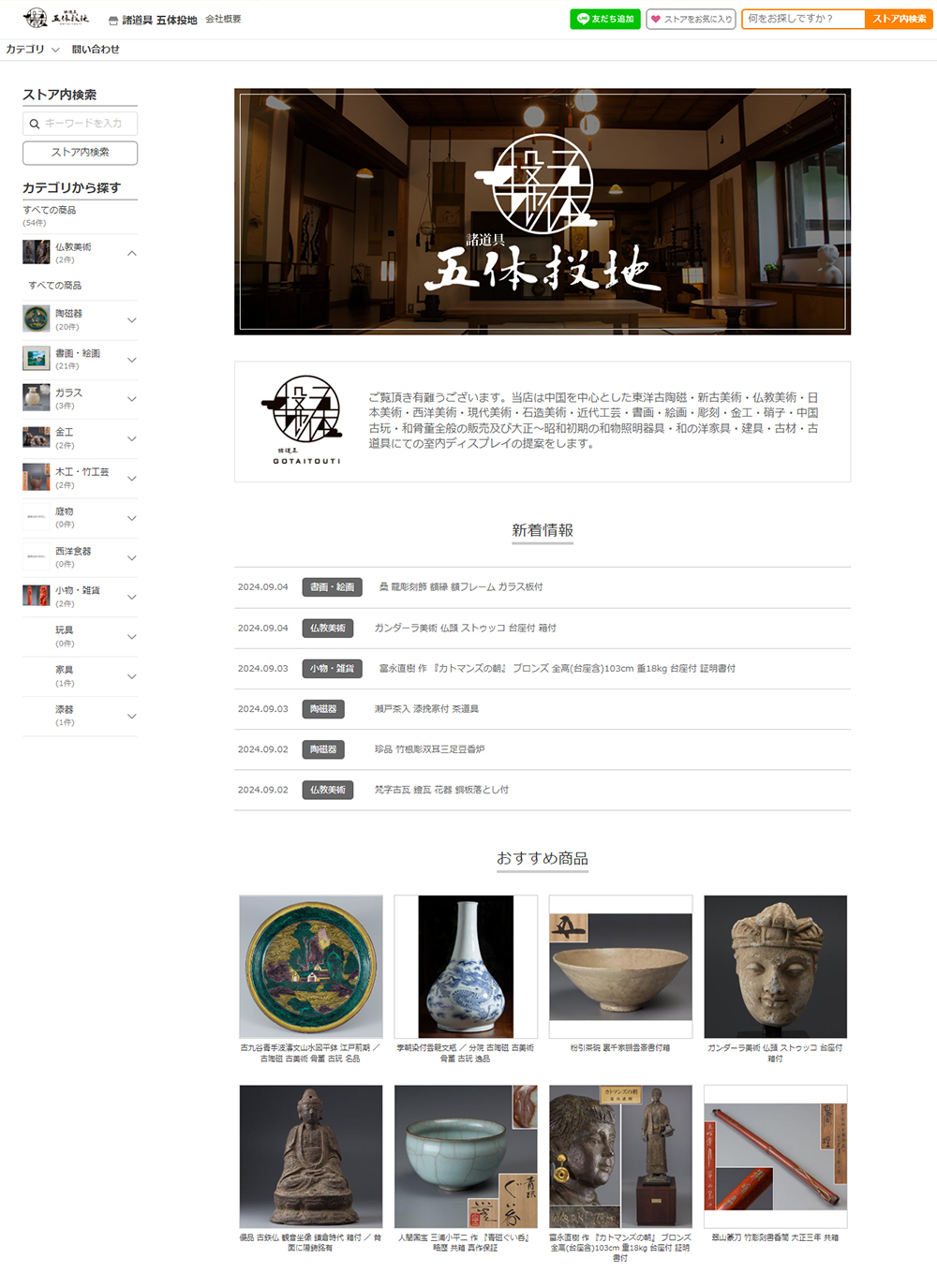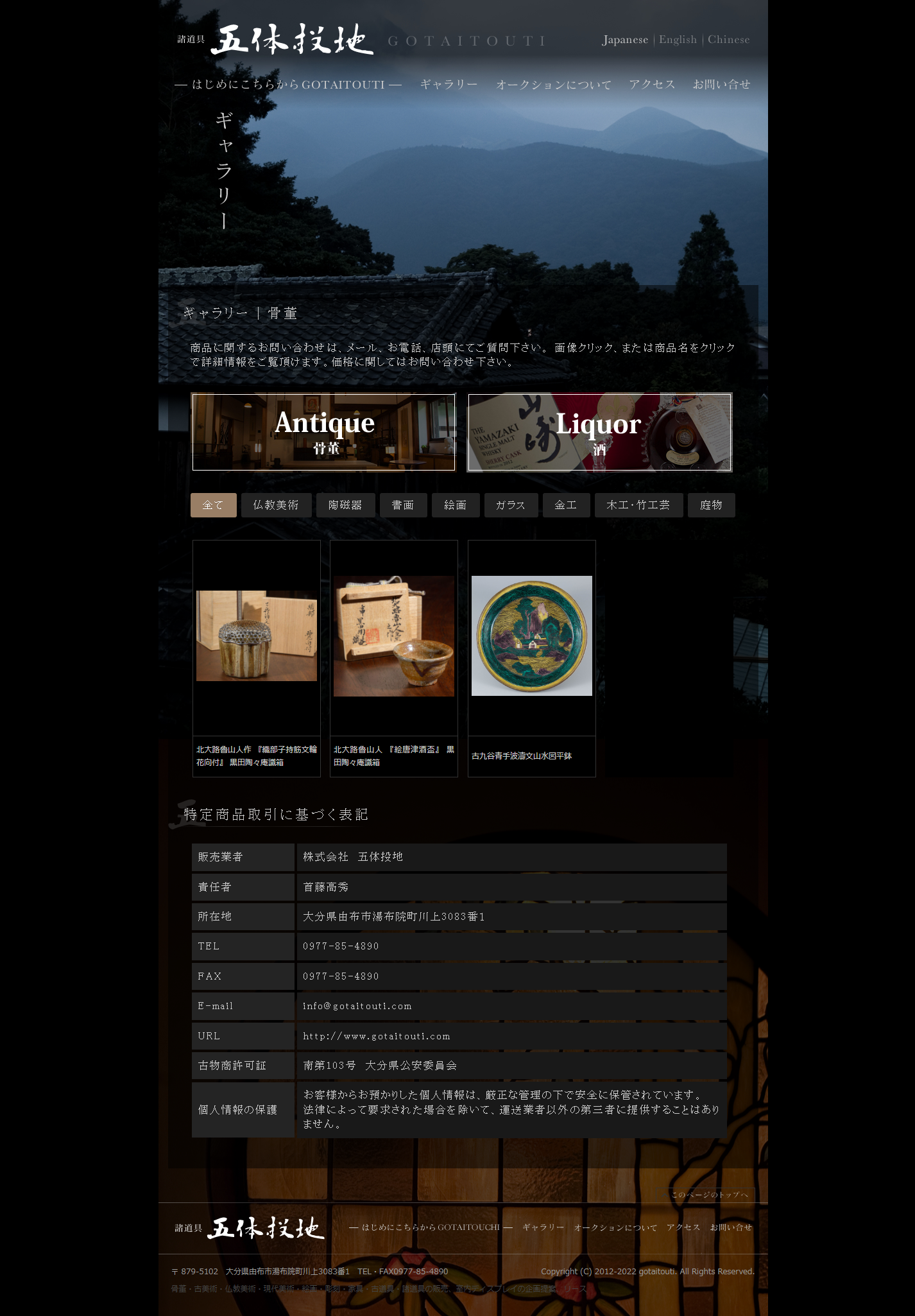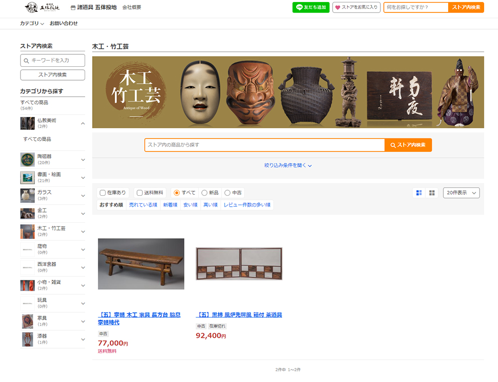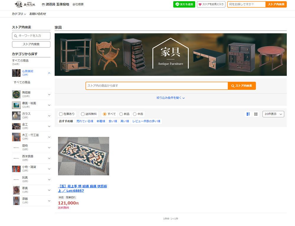 元々骨董品のみの取り扱いでしたが、酒類の取り扱いに伴い、カテゴリ別のバナーを設置しました。