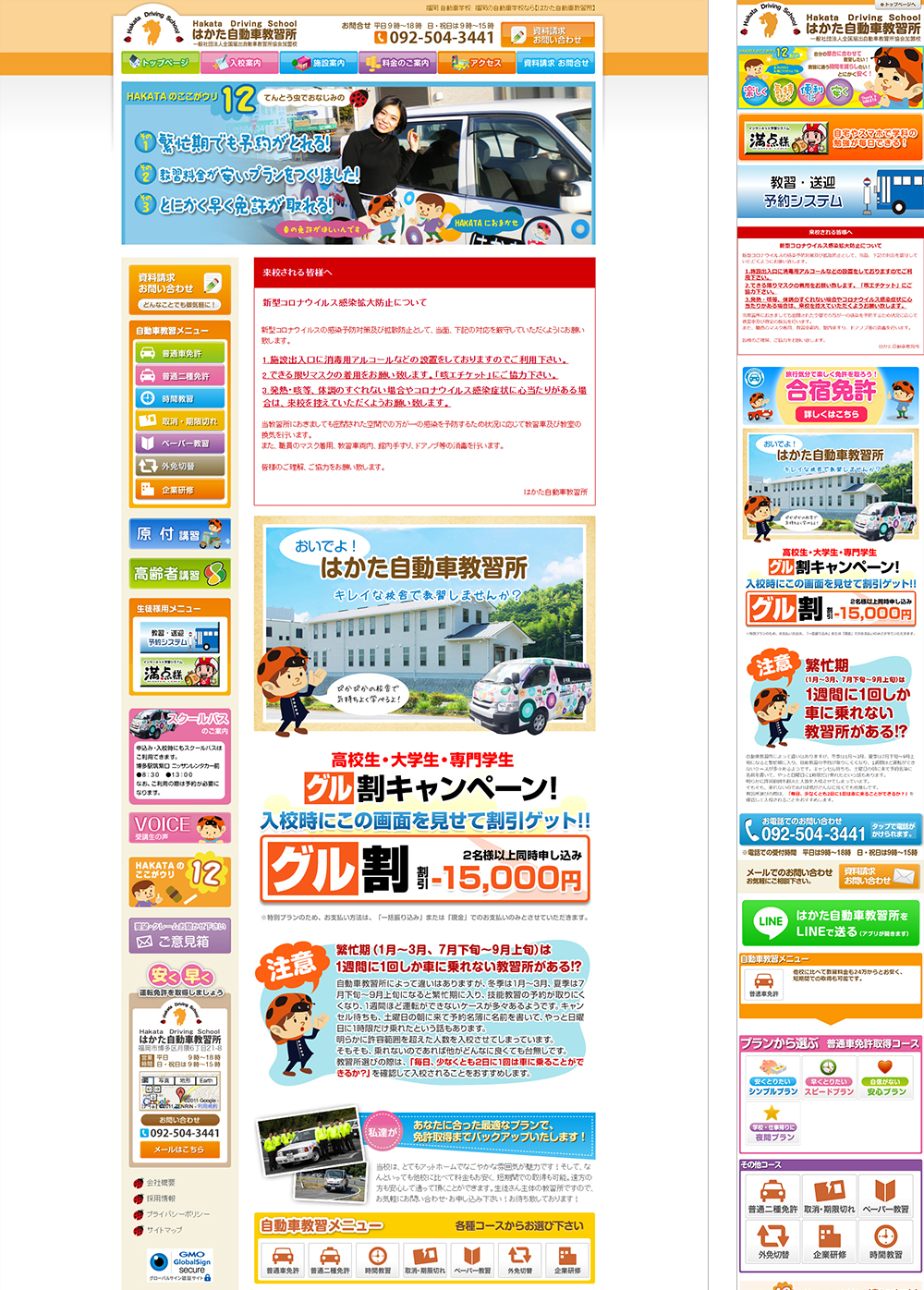 自動車教習所のシステム導入に合わせたバナー制作や、先輩が事前に制作したグローバルナビに合わせてサイドナビボタンを制作したりしていました。